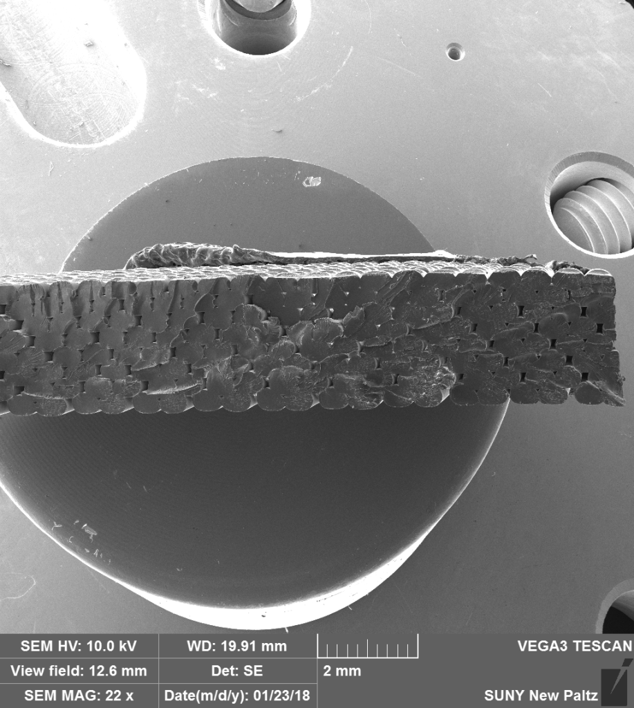 Fracture surface of 3-D printed plastic.